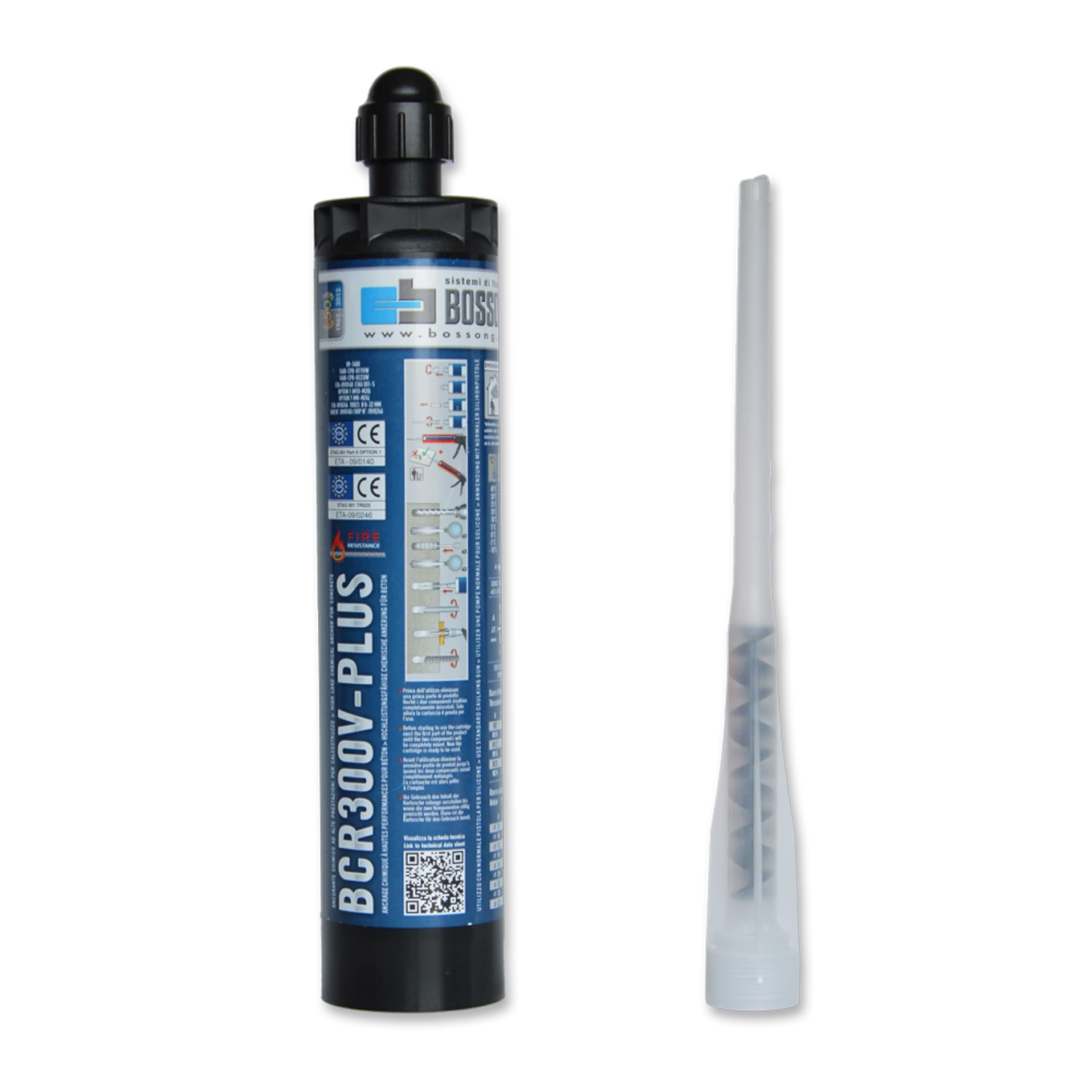 Bossong BCR V-PLUS je profesionální dvousložková vynylesterová chemická kotva, bez obsahu styrenu, pro vysoké zatížení, s osvědčením CE a atestem ETA pro použití v betonu.